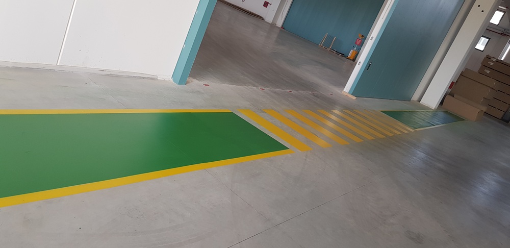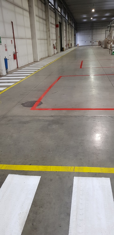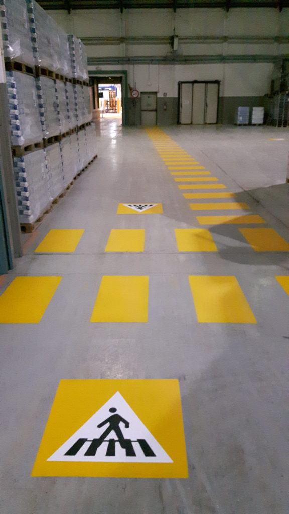 Segnaletica all’interno di un capannone industriale Alimentare (Bologna)